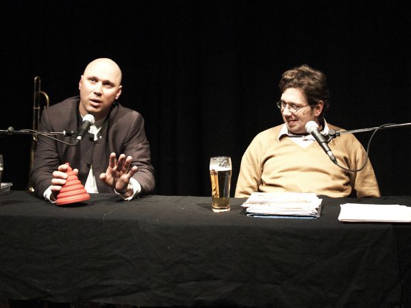 Bei ihrer literarisch-musikalischen Doppelconférence liest Franzobel, Bertl Mütter singt und spielt Posaune und manchmal auch Euphonium. Und es gibt manches zu besprechen.