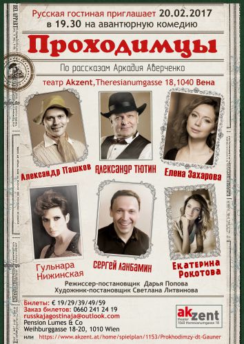 Es spielen: Elena Zakharova, Alexander Tyutin, Gyulnara Nizhinskaya, Aleksandr Pashkov, Ekaterina Rokotova und Sergey Lanbamin