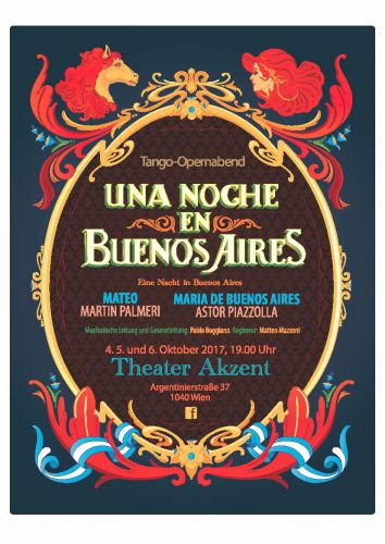 In den Hauptrollen sind zu sehen: Lisandro Guinis als der Kutscher Miquele in „Mateo“ und als Payador in „Maria De Buenos Aires“ und Liliana Rugiero als Doña Carmen in „Mateo“ sowie als „Maria in Maria De Buenos Aires“. Die künstlerische und Gesamtleitung der Tango-Opern-Abende verantwortet Pablo Boggiano. Er ist ein in Wien lebender und international arbeitender Dirigent aus Buenos Aires, der neben einem breiten klassischen Orchester-Repertoire auch seine Liebe zur (lateinamerikanischen) Chor-Musik und speziell zum Tango pflegt. Der Italiener Matteo Mazzoni konnte für die Regiearbeit gewonnen werden. Er bringt seine Erfahrung aus vielen Produktionen an italienischen Theatern und Spielstätten in ganz Europa ein. Derzeit ist er auch Direktor des Teatro Pergolesi in Jesi, Ancona. Es erwartet Sie ein Theatererlebnis voller Leidenschaft und intensivem Lebensgefühl. Freuen Sie sich auf Tango in seiner schönsten Form – als spannende Kombination aus Tanz, Musik, Poesie und Drama!
