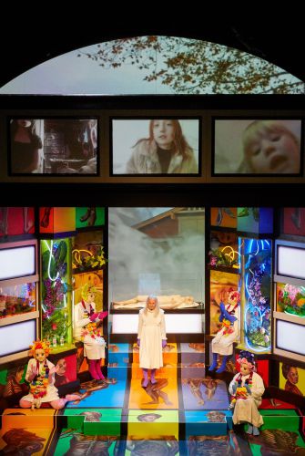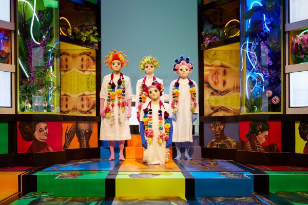 Vom Freitod fünf streng behüteter Schwestern in einer nordamerikanischen Vorstadt erzählt Jeffrey Eugenides' Roman The Virgin Suicides, der als Sensation gefeiert und 1999 von Sofia Coppola verfilmt wurde. Susanne Kennedy greift die rätselhaften Ereignisse rund um den Tod der pubertierenden Schwestern auf und inszeniert sie als psychedelischen Trip. Das Publikum folgt den Mädchen auf ihrer Reise anhand der Struktur des Tibetanischen Totenbuchs. Sterbebegleiter ist der zum Avatar gewordene LSD-Guru Timothy Leary. Auf der Bühne, einem gigantischen Altar aus bunten Video-Screens und Schreinen, zelebrieren Figuren in prächtig geschmückten Gewändern und Masken das Andenken an die Mädchen. Als Medien der Erinnerung oszillieren sie zwischen der Welt der Schwestern und den Beobachtungen der Nachbarsjungen. In ihrer unverwechselbaren Ästhetik der Verfremdung und radikalen Künstlichkeit erschafft Kennedy einen Raum, der selbst zu Erinnerung wird.