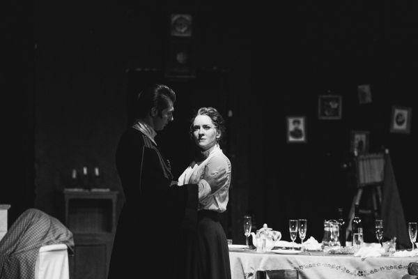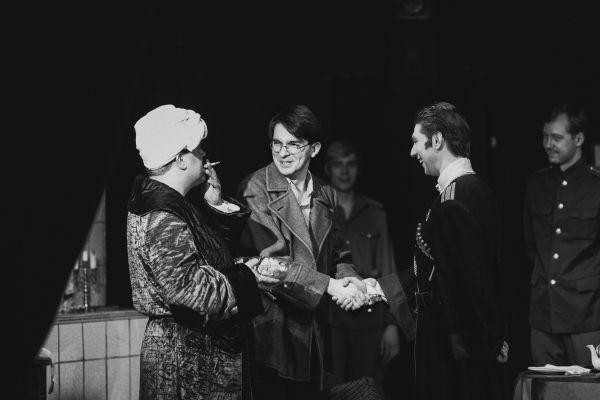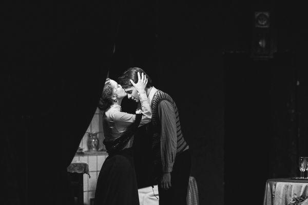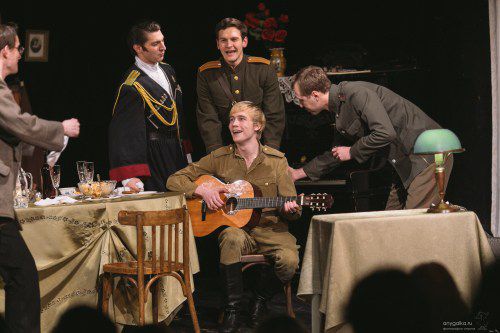 Удивительное настроение создает звуковое оформление спектакля. Тут и живая музыка и песни под гитару и фортепиано, и разрывы снарядов за окном, топот солдатских сапог по улицам охваченного войной города, и вдруг романтичный Мендельсон из совсем другой жизни.