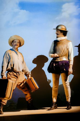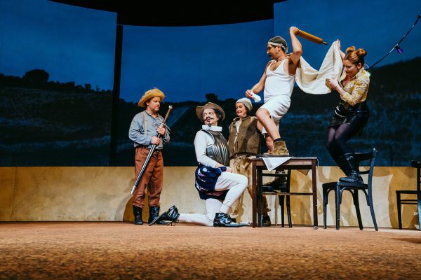 Er hat das nötige Rüstzeug zur Illusion und sein tugendhaftes Herz am richtigen Fleck: Don Quijote von der Mancha, der Ritter von der traurigen Gestalt. Beharrlich, unbeirrbar und unerbittlich, tritt er in Begleitung seines Nachbarn, Freund und treuen Knappen Sancho Panza eine abenteuerliche Reise an. Und noch bevor die beiden am Ziel sind, wird ihre „Geschichte“ zu Literatur und die beiden werden gefeiert wie Helden. Doch Moment, was ist eigentlich das Ziel dieser Reise? Worin liegt der Sinn dieser Abenteuer? Und: In welchem Jahrhundert leben wir denn?