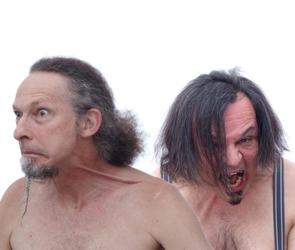 Die Träger des Schwarzen Humor-Gürtels, beide an einem Schwarzen Freitag vom Schwarzstorch gebracht, beglücken seit Jahrzehnten das Kabarettpublikum vom Schwarzen Meer bis zur Schwarzen Sulm. In nächtelanger Schwarzarbeit packen sie schwarz-brennende Themen an, die sie auch musikalisch umsetzen, von Chanson noir bis Black Metal.